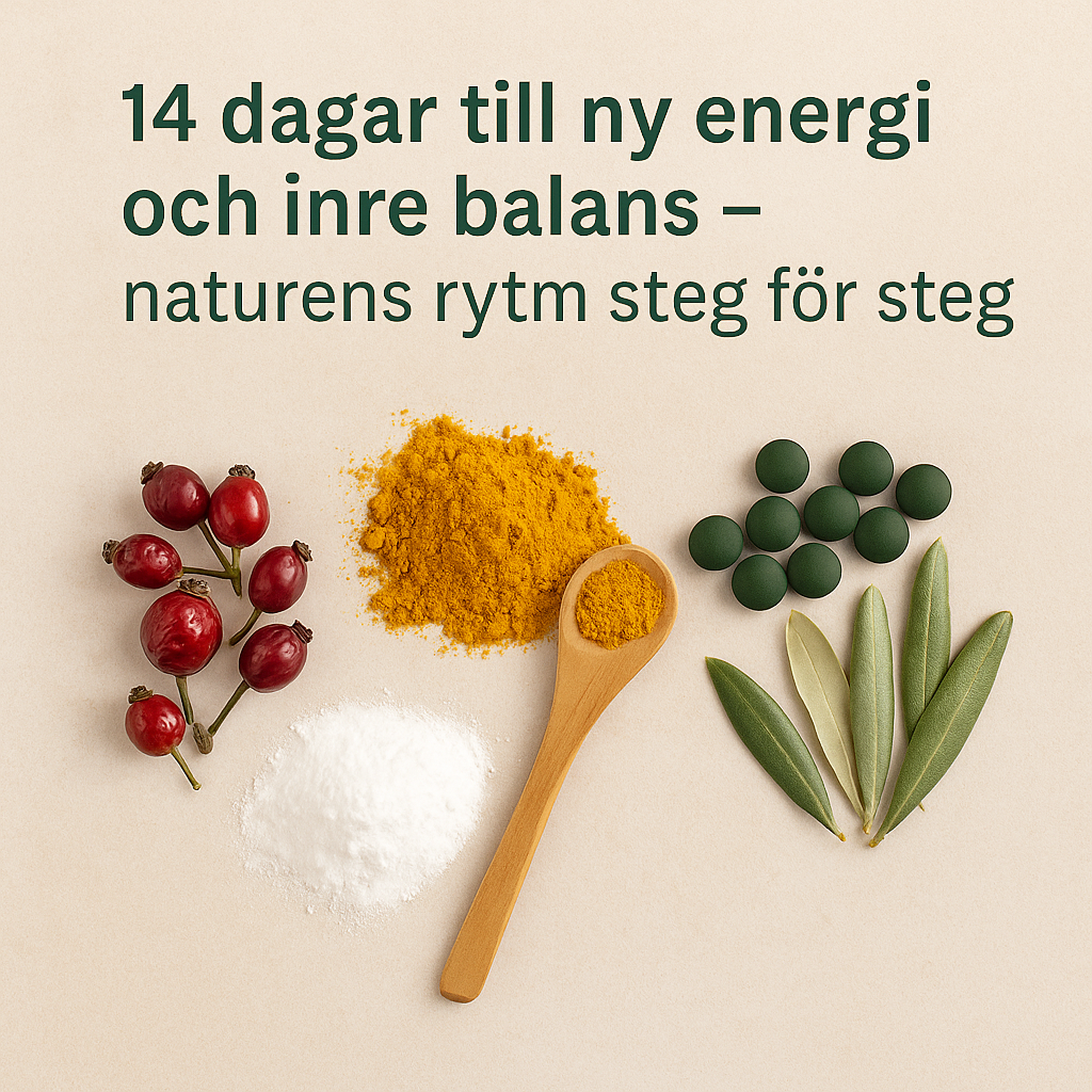 Livet förändras inte på en dag – men på fjorton dagar kan du känna hur kroppen hittar en ny rytm. Med nypon, gurkmeja, chlorella, MSM och olivblad kan du bygga upp energi och lugn inifrån. Här är ett enkelt och naturligt upplägg som du kan följa hemma.
