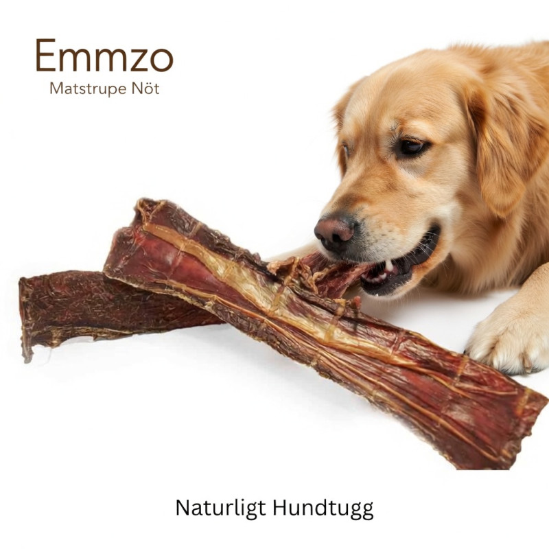 Matstrupe Nöt från Emmzo är ett segt och smakrikt hundtugg för dig som vill välja en naturlig produkt med enkel sammansättning. Det passar bra i vardagen som belöning eller aktivering och är ett uppskattat alternativ för hundägare som föredrar torkade hundtugg med tydligt ursprung.