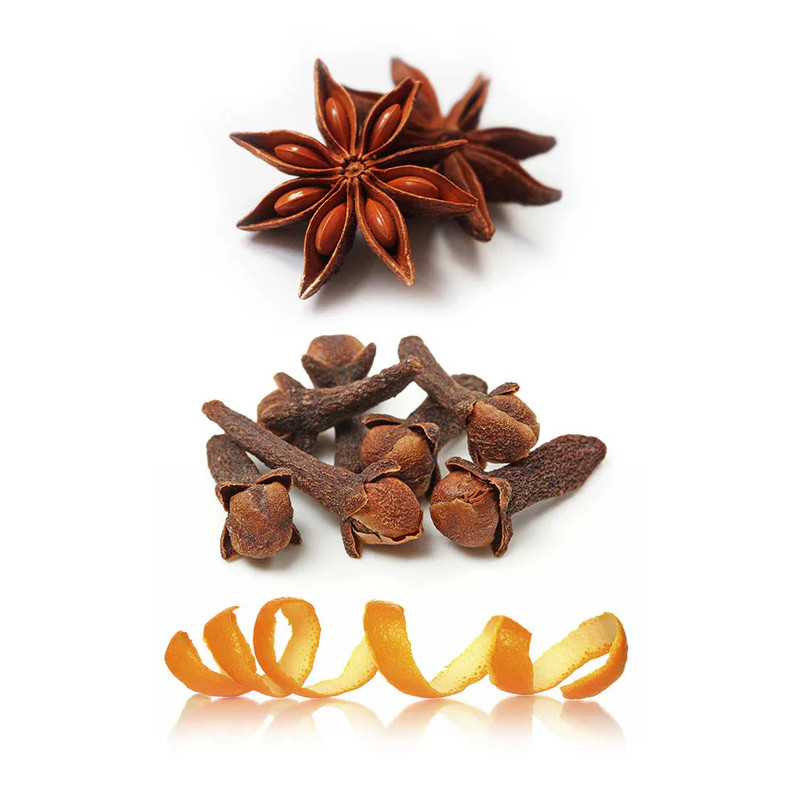 - Beståndsdelar (vanligen): Citrus (t.ex. Wild Orange, Lemon), kryddor (t.ex. Clove, Nutmeg, Star Anise) och Vanilla – kontrollera alltid aktuell etikett för exakt innehåll.