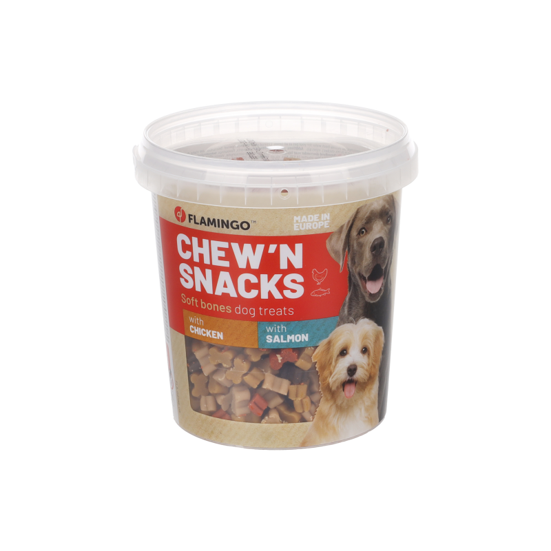 Chew’n Snack Bones Mini Mix är ett mjukt och lättuggat hundgodis framtaget för daglig belöning och aktivering. De små benen har varierade smaker av kyckling, nöt och fisk och är ett populärt val vid träning eller som uppskattat mellanmål.