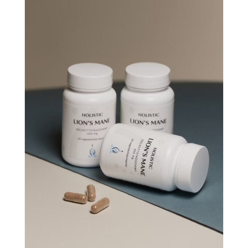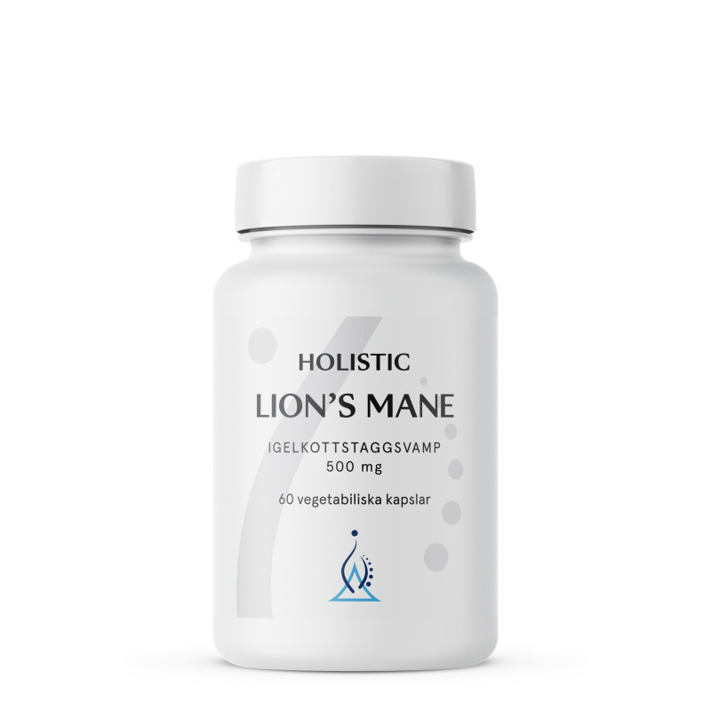 Holistic Lion’s Mane är ett kvalitativt tillskott baserat på svampen Lion’s Mane (Hericium erinaceus), även kallad igelkottssvamp. Varje kapsel innehåller 500 mg extrakt från svampens fruktkropp, standardiserat till 40 % polysackarider och 25 % betaglukaner – de aktiva ämnen som gjort svampen så uppskattad. Produkten är fri från onödiga tillsatser och tillverkad för dig som vill ge hjärnan och kroppen naturligt stöd.