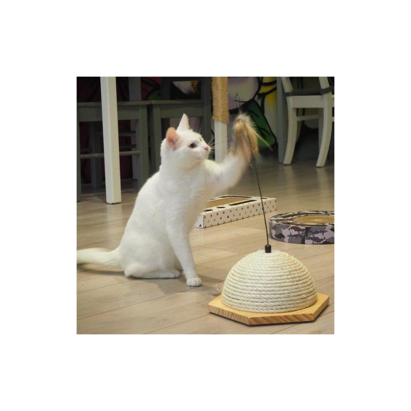 Vår klöspuck i jute med fjäder på vajer är ett utmärkt val för alla kattägare som vill erbjuda sin katt en funktionell och rolig leksak som varar länge.