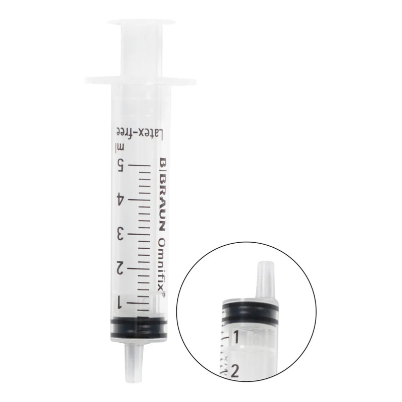Omnifix spruta Luer 5 ml är en högkvalitativ, steril spruta med klar cylinder och tydlig skala för noggrann dosering. Den har svart kolv för god kontrast mot vätskan och är helt fri från PVC och latex. Luer-fattningen ger en säker anslutning till kanyl, kateter eller annan koppling.