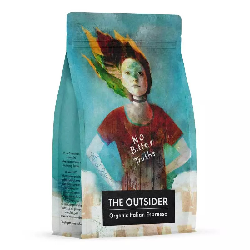 The Outsider är ett ekologiskt italienskt espressokaffe framtaget av Gringo Nordic. Det är ett smakfullt, robust och ändå finstilt kaffe där en liten andel robusta skapar det där extra trycket som många espressoälskare uppskattar. Resultatet blir en avrundad, krämig och chokladtonad espresso som fungerar både svart och i mjölkdrycker.