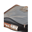 - Konstruktion: Förstärkta punkter för spännen och gjordinfästningar.