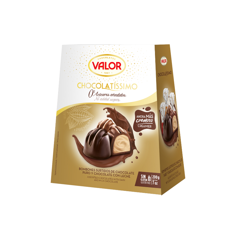 Valor är ett spanskt chokladhus med anor från 1881. I Chocolatíssimo-serien fokuserar man på praliner med fyllig smak och noggrant balanserade fyllningar. Serien utan tillsatt socker är utvecklad för att ge samma chokladupplevelse som klassiska praliner, men med alternativ sötning och lägre andel sockerarter.