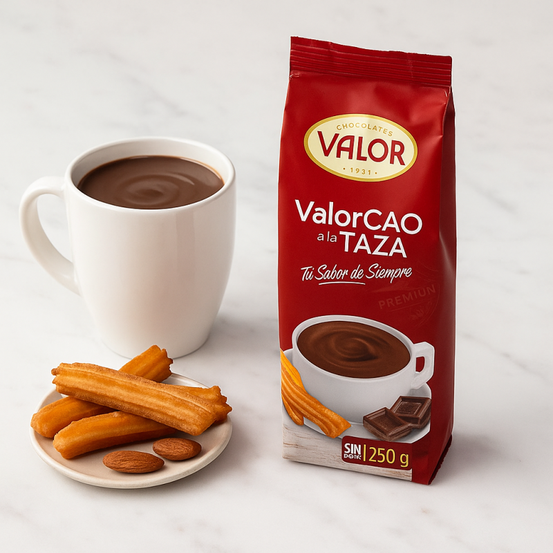 Valorcao är en traditionell spansk chokladdryck i pulverform, känd för sin djupa kakaosmak och krämiga konsistens. Det är ett snabbt och enkelt sätt att njuta av äkta varm choklad, precis som den serveras på spanska caféer. Perfekt att värma till frukost, kvällsfika eller som lyxig helgchoklad.