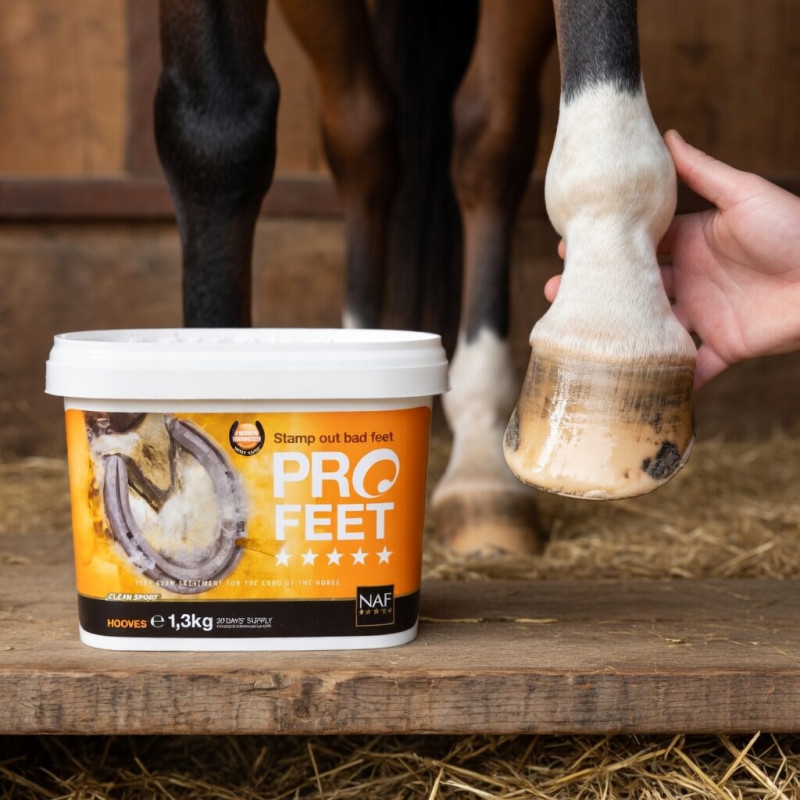 NAF Profeet är ett fodertillskott utvecklat för att stödja hästens hovkvalitet och hovtillväxt. Produkten innehåller en kombination av näringsämnen och växtbaserade ingredienser som används i produkter för hovvård och allmänt välbefinnande.
