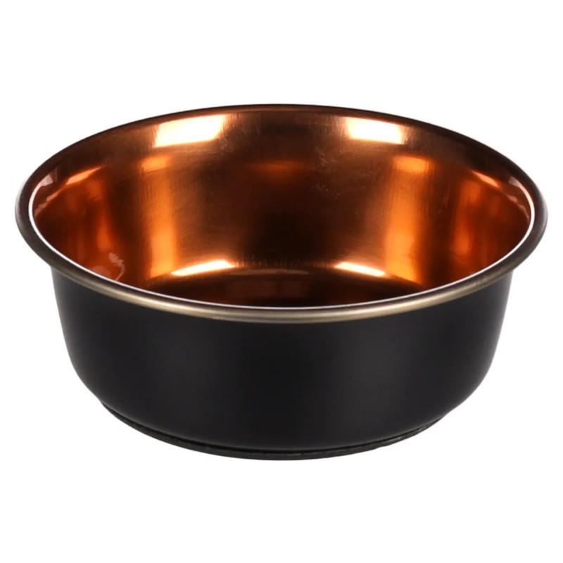- Elegant rostfri skål i sofistikerad svart/koppar design