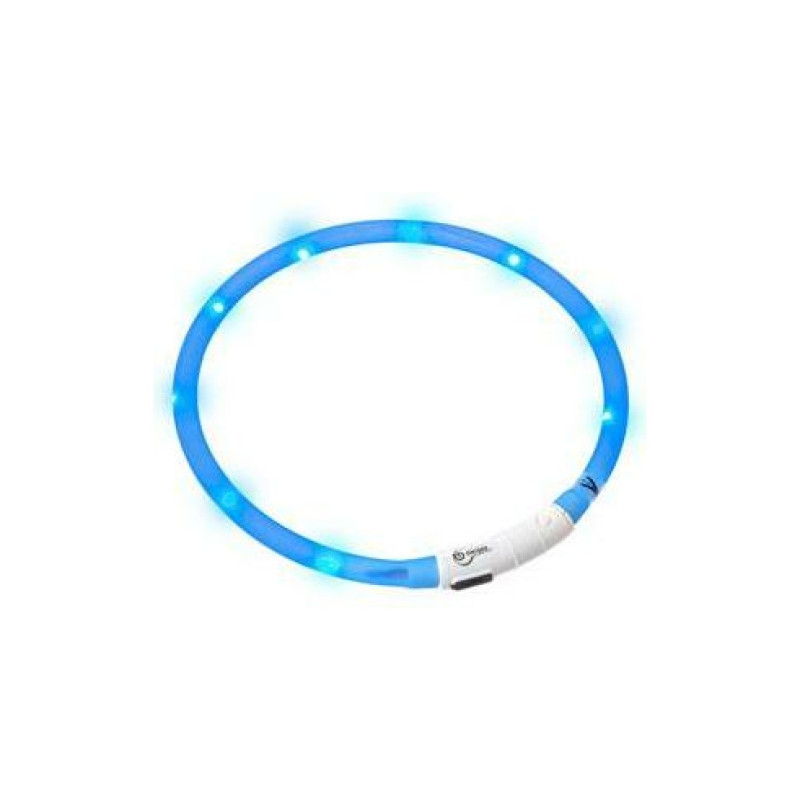 Blinkhalsband Visio Light 20–70 cm med LED-belysning. USB-laddning, justerbar storlek och stark synlighet i mörker.