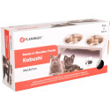 Denna matbar levereras med två rostfria skålar, var och en med en kapacitet på 380 ml. Detta gör att du kan servera både mat och vatten samtidigt, vilket är praktiskt och tidsbesparande. Skålarna är också djupa nog att förhindra spill och stänk, vilket håller matområdet rent och prydligt.