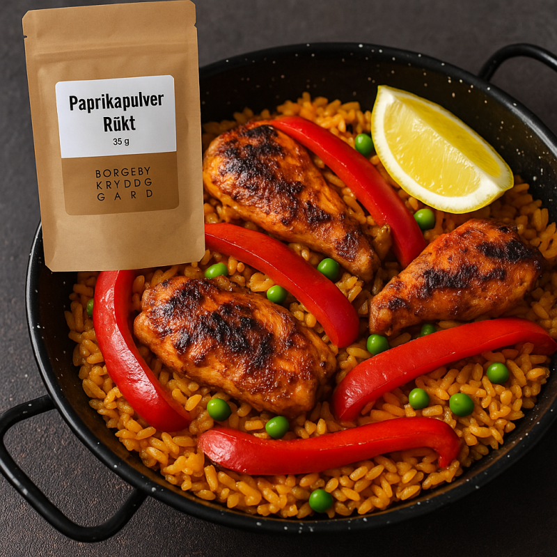 Rökt paprikapulver är traditionellt i det spanska köket (bl.a. paella och chorizo) och i centraleuropeiska grytor som gulasch. Ekrökning ger en djup arom och en karakteristisk rödbrun färg. Denna produkt är utvald paprika från Spanien, paketerad av Borgeby Kryddgård för jämn kvalitet och smakstabilitet.