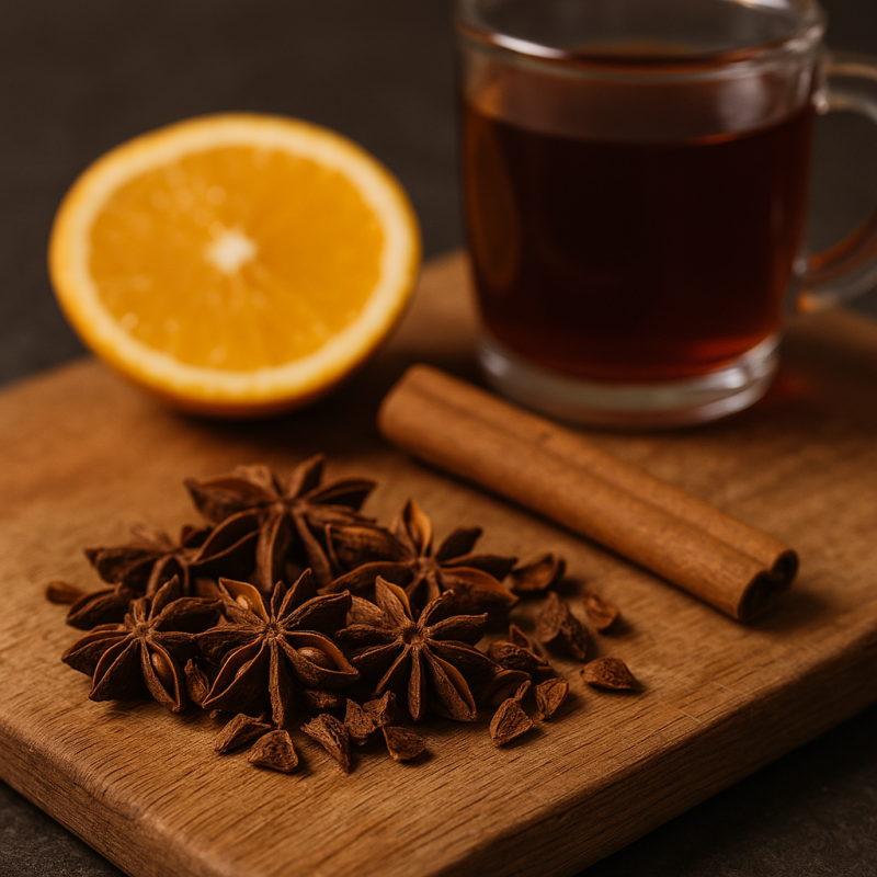 - Skapa en teblandning med stjärnanis, kanel och eventuellt lite torkat apelsinskal.