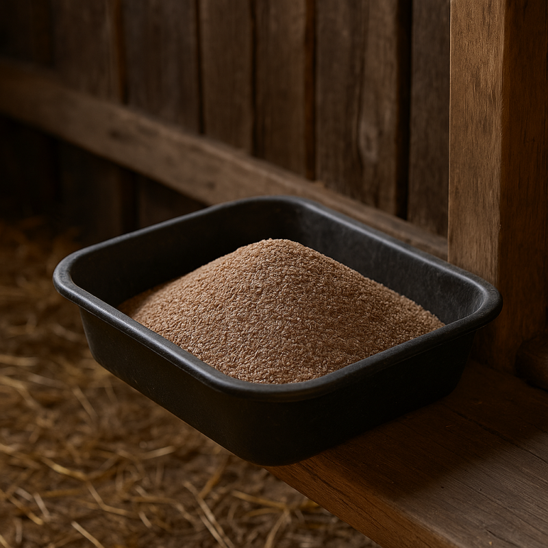 - Traditionell användning vid sandperioder: Används ofta under tider när hästar riskerar intag av sand/jord i hage eller vid kort bete.