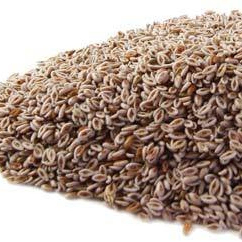 Fröna kommer från etablerade odlingar där mogna ax ger små, lätta frön med hög skalandel. Varje planta kan ge mycket frö, men det är noggrann rensning och rätt torkning som avgör kvaliteten. Vi väljer partier med stabil partikelstorlek och jämn svällgrad för att få en förutsägbar användning i foderstaten.