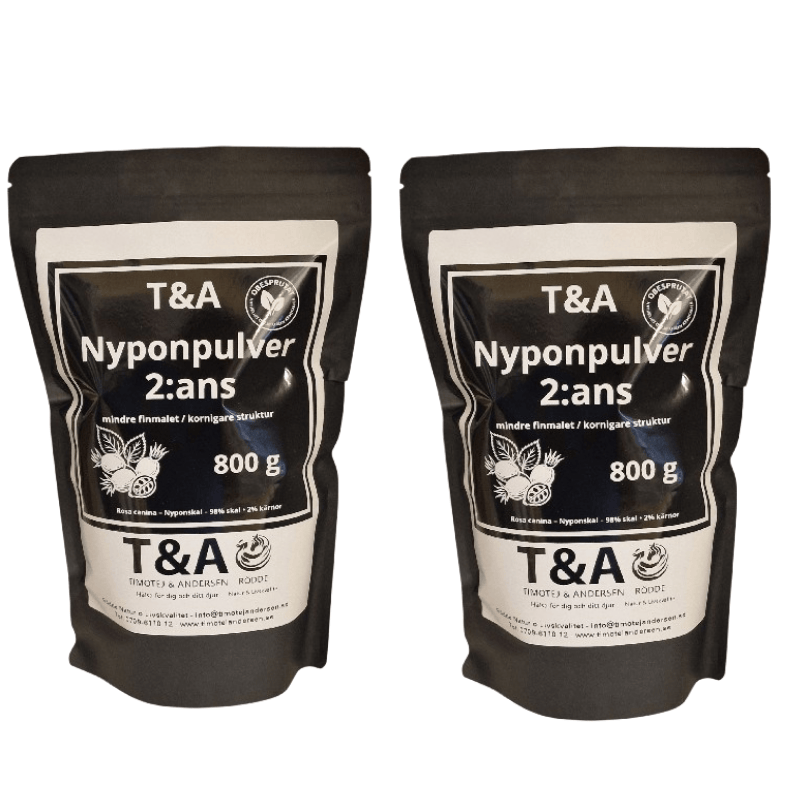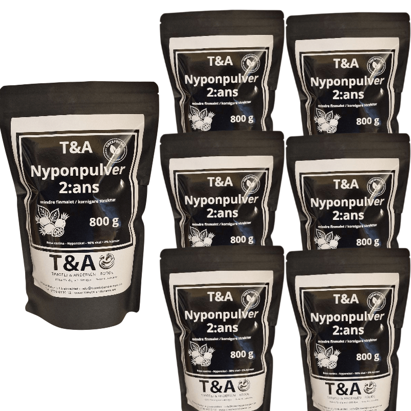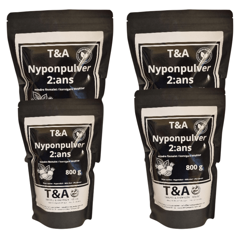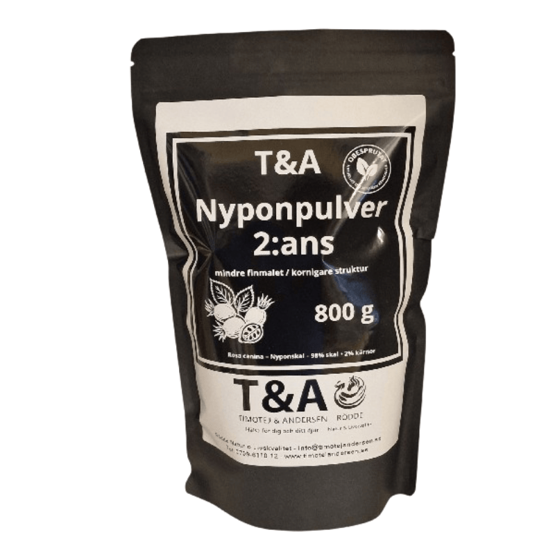 Så genom att välja T&A:s Nyponpulver 2:an gör du inte bara ett högkvalitativt tillskott till din kost, utan du investerar också i din maghälsa och övergripande välbefinnande. Den välbalanserade kombinationen av skal och pektin i detta nyponpulver ger dig en möjlighet att stödja din kropp på ett sätt som är både skonsamt och givande.