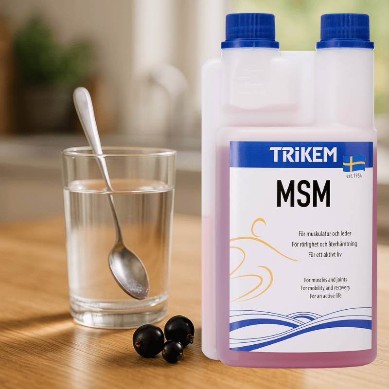 MSM-lösningen blandas enkelt i dryck eller mat. Den milda svartvinbärssmaken gör den smidig i rutiner. Många väljer att ge en startperiod följt av underhållsdos, anpassad efter individuell tolerans och behov.