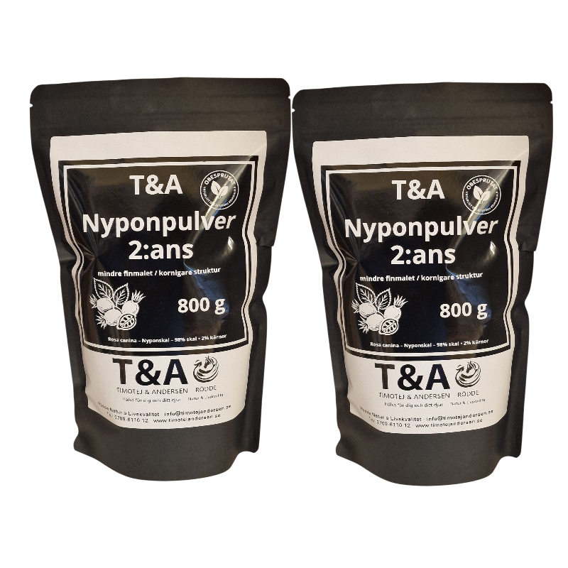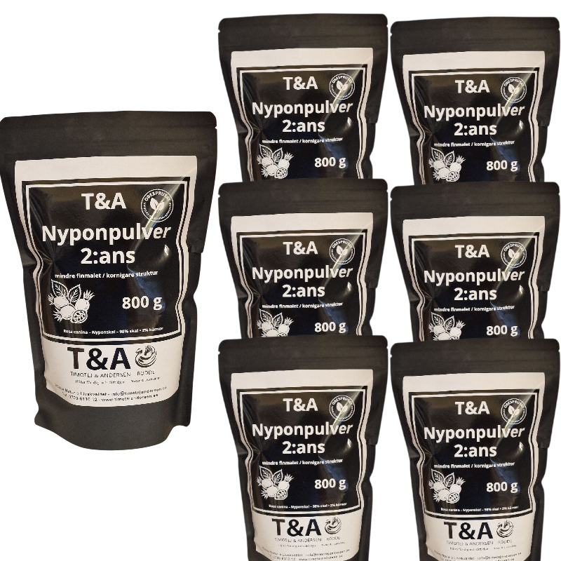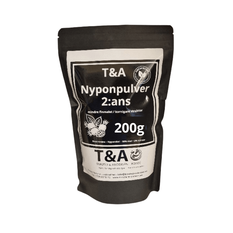 T&A Nyponpulver 2:ans malning är ett rent och obesprutat nyponpulver med naturlig smak och mycket hög kvalitet.