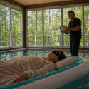 Du ligger bekvämt och torrt på en madrass i en inomhuspool. Kroppen följer vattnets mjuka rörelser medan ljudet från oceandrumet skapar en känsla av havets vågor. Upplevelsen är lugn, trygg och passar även dig som känner att du vanligtvis har svårt att slappna av.