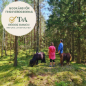 Säkerhet går först. Hästen leds tryggt och tempot hålls lågt. Vi väljer lätta stigar och gör regelbundna pauser. Vid sämre väder anpassar vi rutten och längden i dialog.